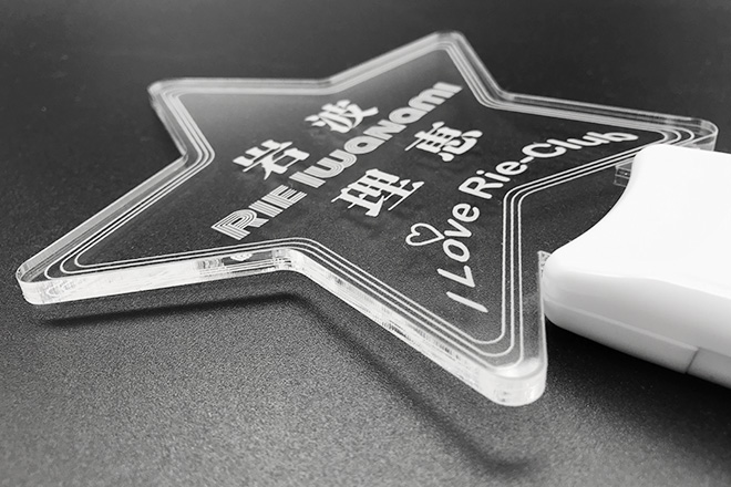 推しの名前が目立つ星型のアクリルペンライトが完成しました。