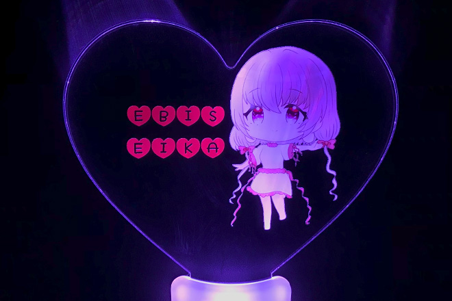ちびキャラの愛らしさを彩るハート柄のアクリルペンライトが完成しました。