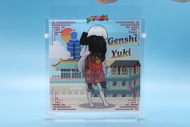お客さまからのご注文で製作した着せ替えアクスタです。各プレートにオリジナル印刷を施しており、さまざまなデザインを楽しめます。