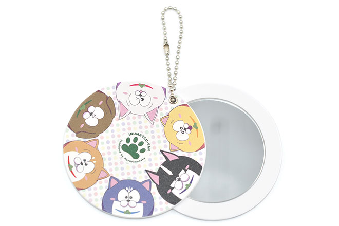 カラフルなドット柄の背景に、犬のキャラがスライドミラーを取り囲むように描かれています。裏面には、犬の後姿が描かれていて、表面と対になるとてもかわいらしいデザインとなっております。ミラー本体は自社工房で丁寧に印刷しますので、キャラクターや中央のロゴマークは、色味や細い線までキレイに再現しています。お客さまのイメージにあう、かわいらしいデザインのオリジナルスライドミラーに仕上がりました。
